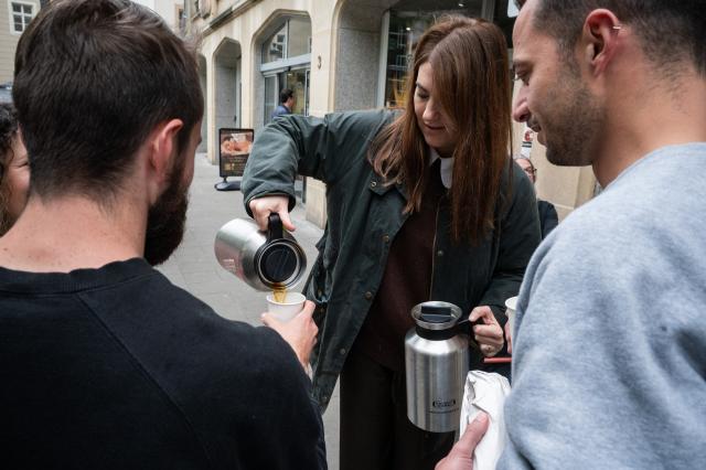 Genee dës Froen huet de Maxime Toussaint dem Vincent Della Schiava, Co-Founder vun de Feierboun Coffeeroasters, gestallt.